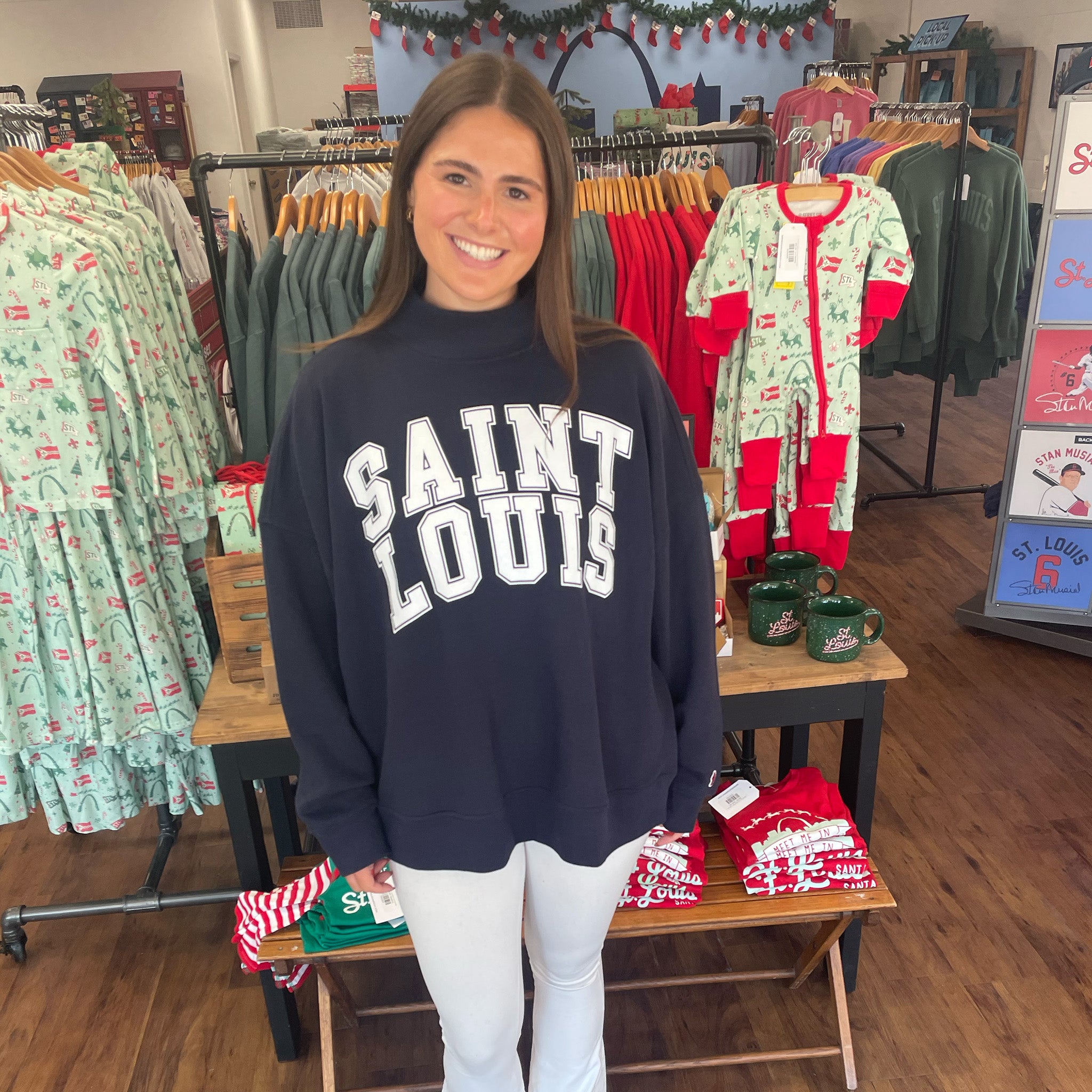 Our mock-neck style sweat made for the Lou! Runs oversized.